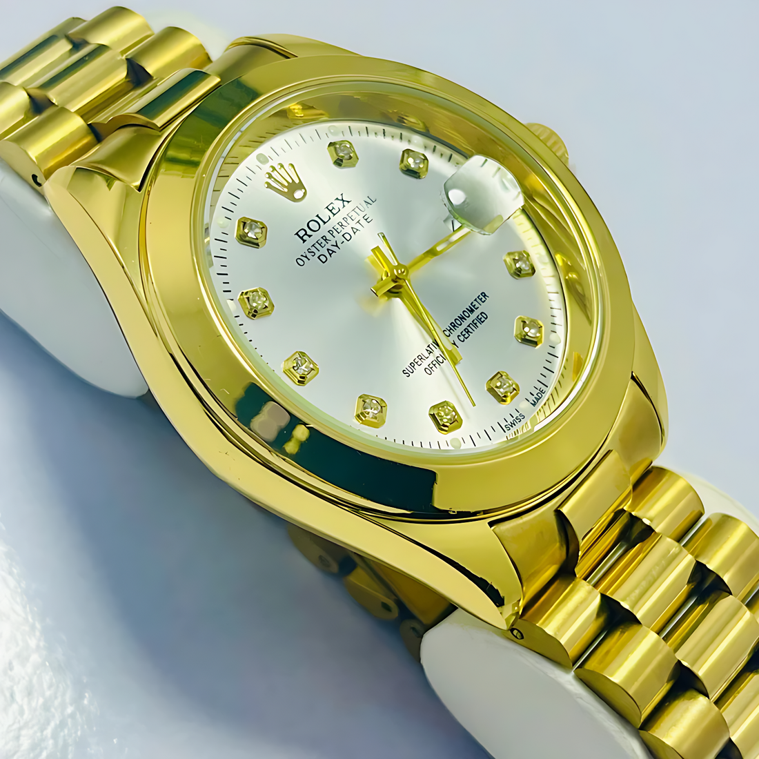 RLX Stainless Steel Date Watch – Golden White